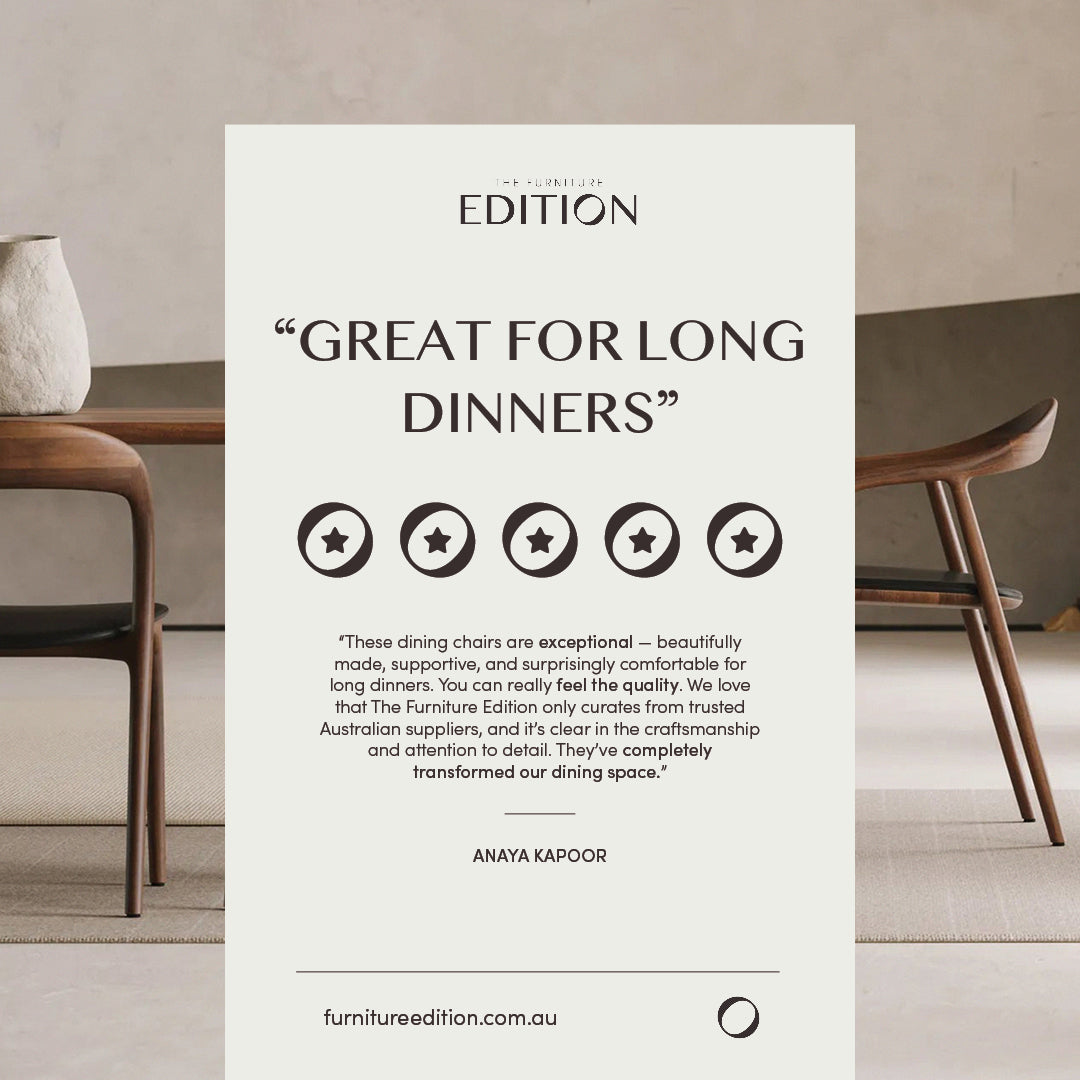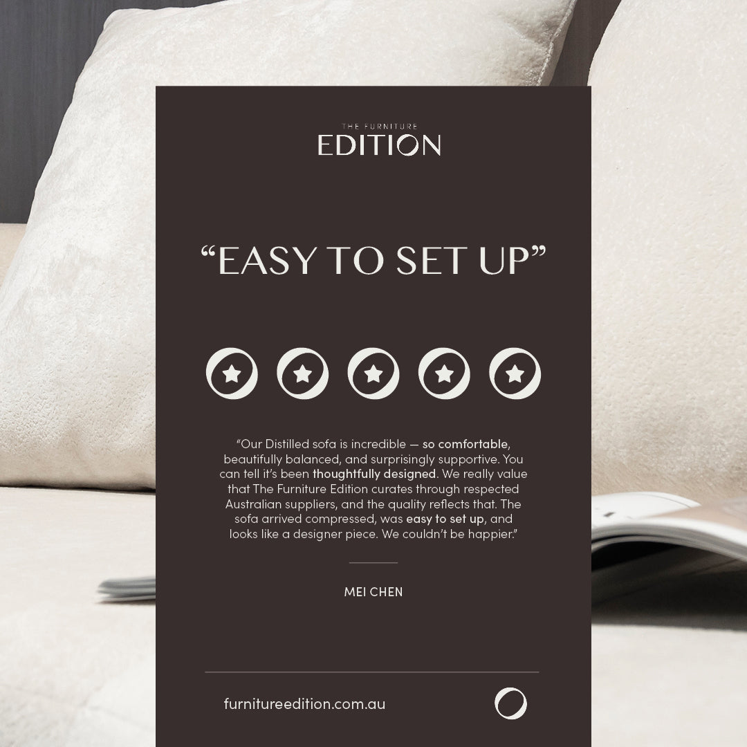 We set out to create a smarter, more sophisticated way to furnish. A curated edit of timeless designs, uncompromising quality, trusted Australian suppliers, and an experience that feels as refined as the pieces themselves.